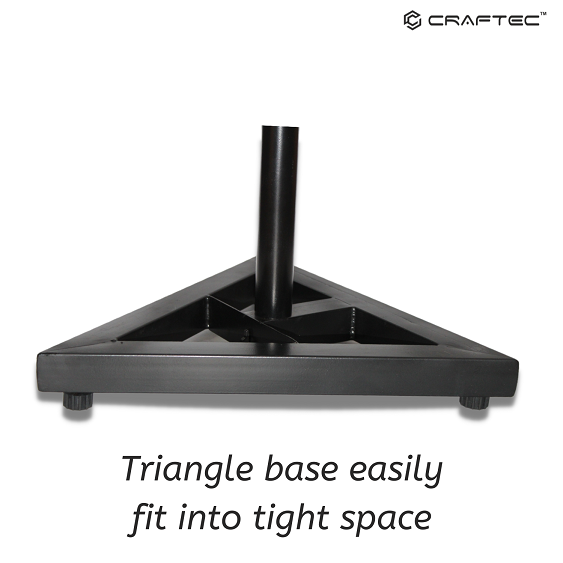 Ms45 Pro  Professional studio monitor and speaker stand Made by steel. Steel tray with non-slip rubber to grant stability and vibrations reduction. Locking pin for locking and height adjustment, center safety knob ensure round pipe gripe. Triangular base with under rubber feet insulation.