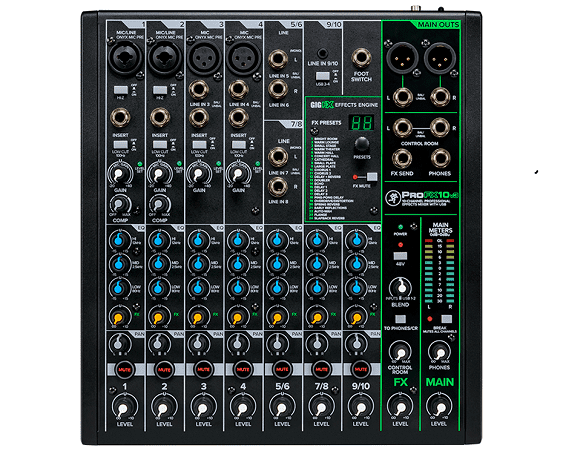 To make sure that you sound perfect, the Mackie ProFX10v3 has an onboard effects processor. The effects processor has a blend function, FX level control, and a quick mute switch. The GigFX effects engine offers up 24 different effects ranging from delays, reverbs, choruses, distortion, and even an auto-wah feature. All of these effects are accessed by a simple twist of the Presets knob.