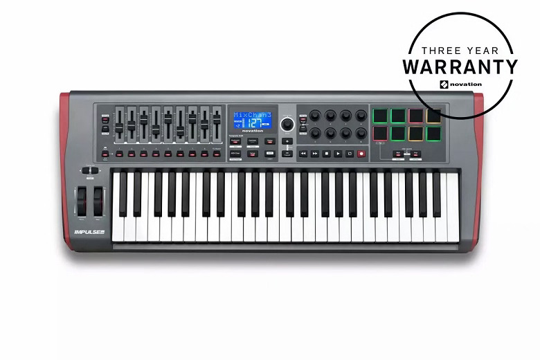 - 49 note velocity sensitive piano style keyboard with assignable after touch