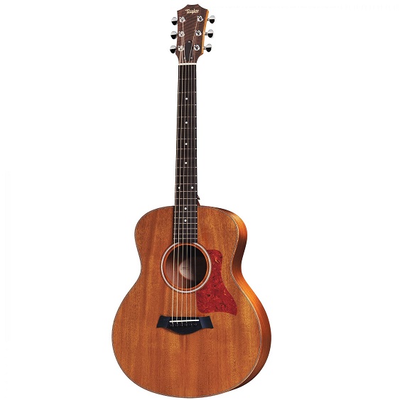 Taylor has a reputation for quality guitars and materials, and the GS Mini acoustic guitar is no exception. This Taylor guitar features a tropical mahogany top and layered sapele back and sides. Both woods are durable and produce great tone. The mahogany top is not as bright as a spruce top but has a full, rich sound with a little extra punch. The layered sapele back and sides of the Taylor GS Mini deliver a great tone while adding durability and stability to the guitar. The ebony fretboard and bridge offer great tone and even more stability to this amazing little guitar.